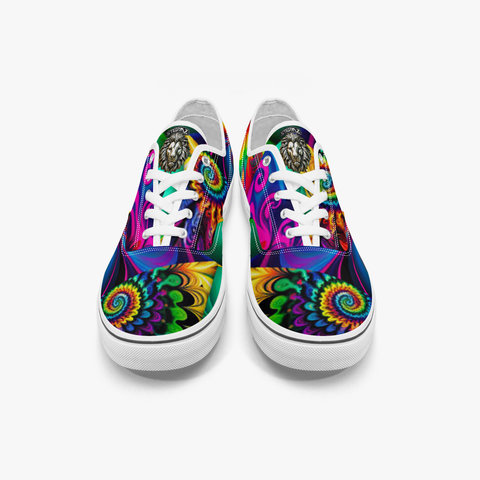 Rainbow Tye Dye - Canvas Low Top skate shoe. White outsoles with a raised bumper outer along with the shoe, these shoes will handle the abuses of skateboarding much better.